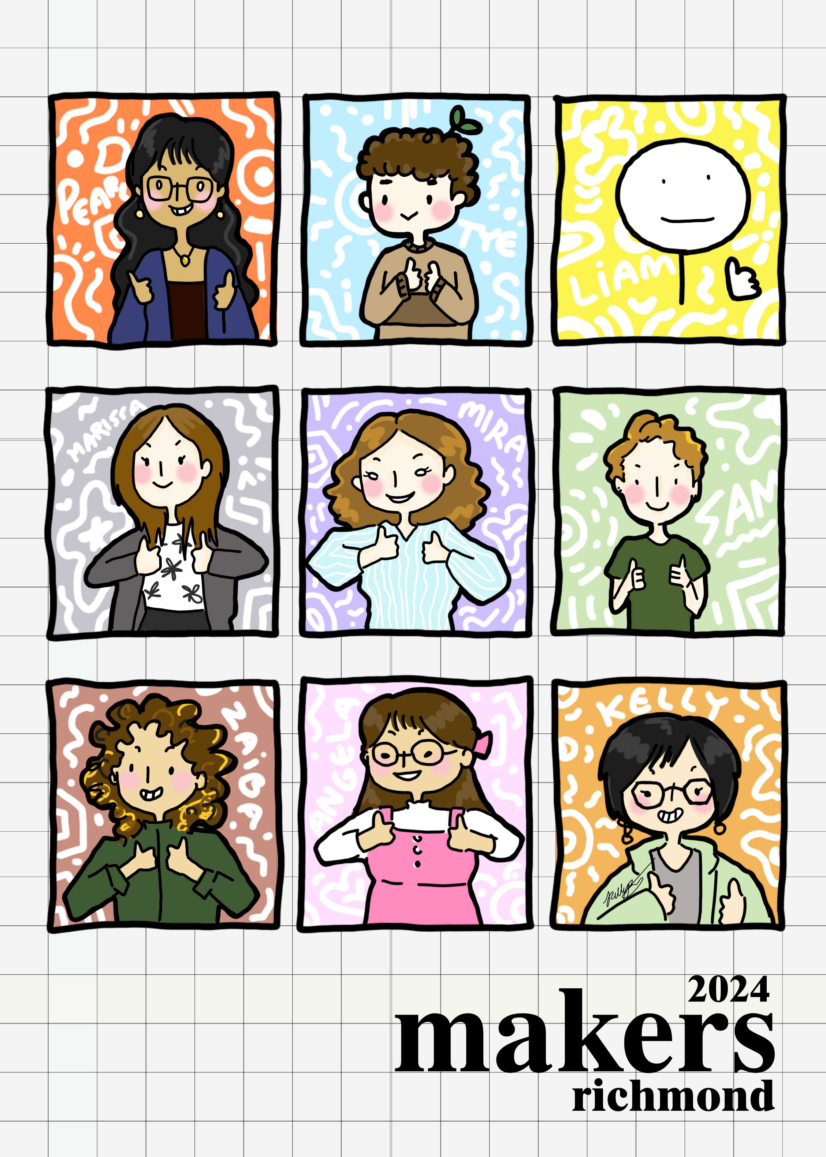 Makers Richmond 2024 Winter -Mira, Sam, Angela, Tye, Kaitlyn, Ana, Liam, Zaiba, Kelly