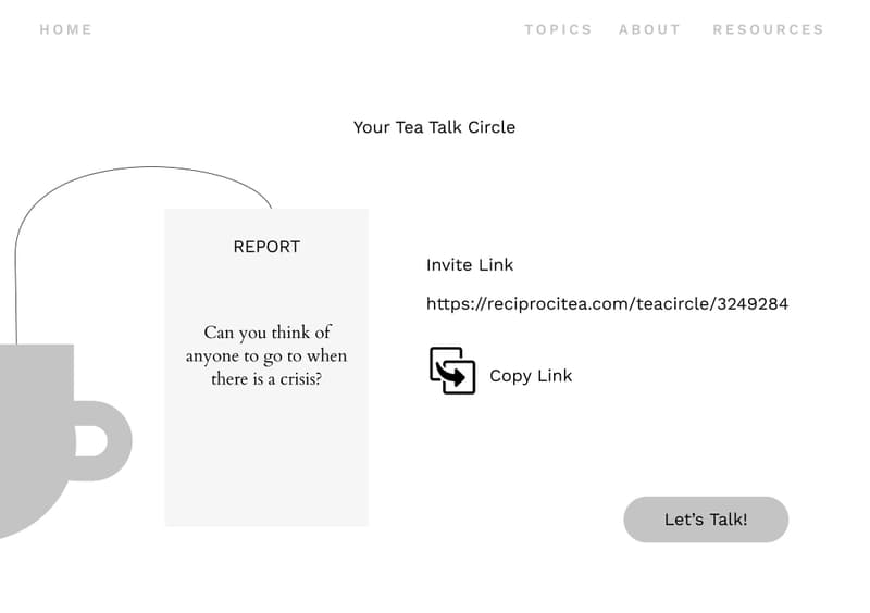 For our virtual version of Reciprocitea, the topics/questions will be available online, and will act as a guide/prompt for visitors of the site to establish or navigate conversations, connect with their community and creating a support network.